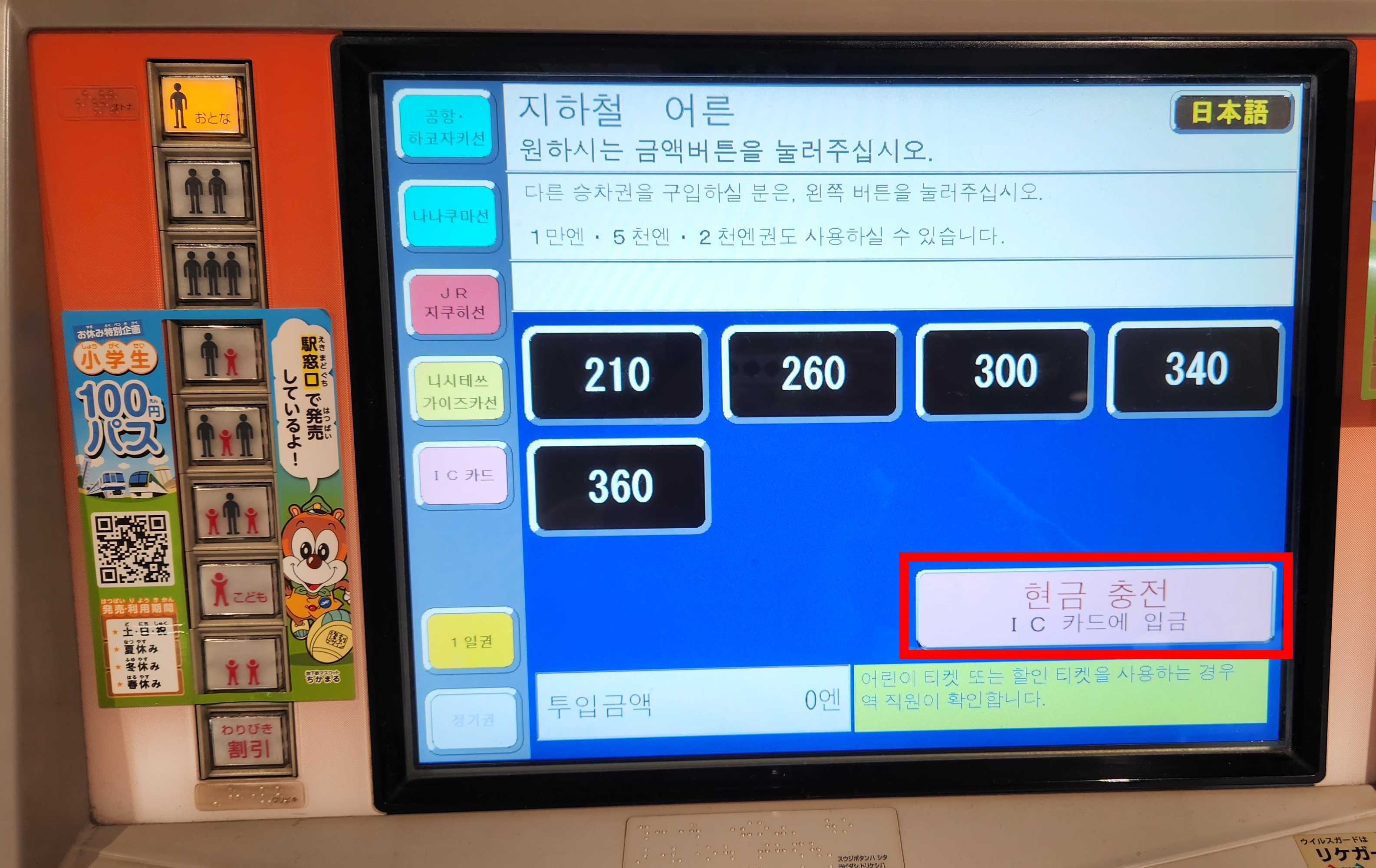 도쿄의 지하철 같은 곳에서는 50엔 단위로도 충전이 가능하다고는 하는데… 제가 본 건 아니라서요.