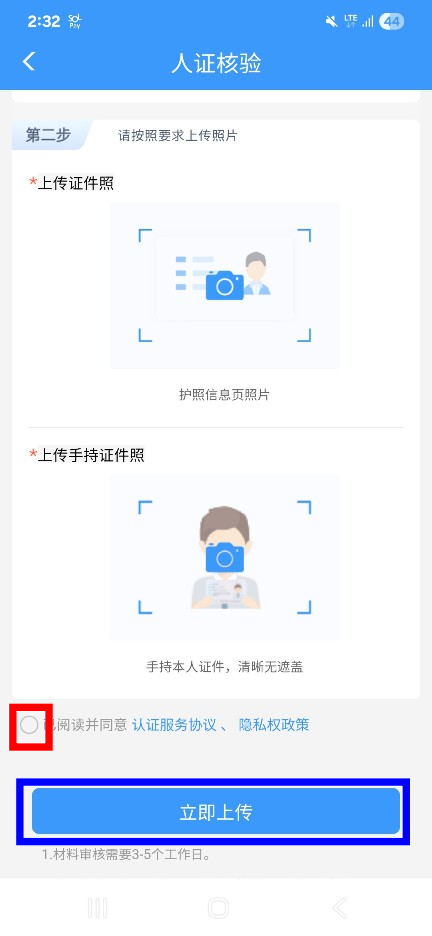 8) 사진 업로드가 끝나면, 빨간 네모 안의 체크박스 (이용약관 등 동의) 에 체크 후