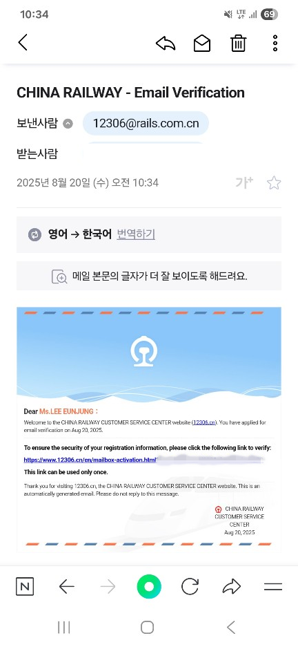 기차 티켓을 예매하기 위해서는 12306 앱에 회원가입이 필요하기에