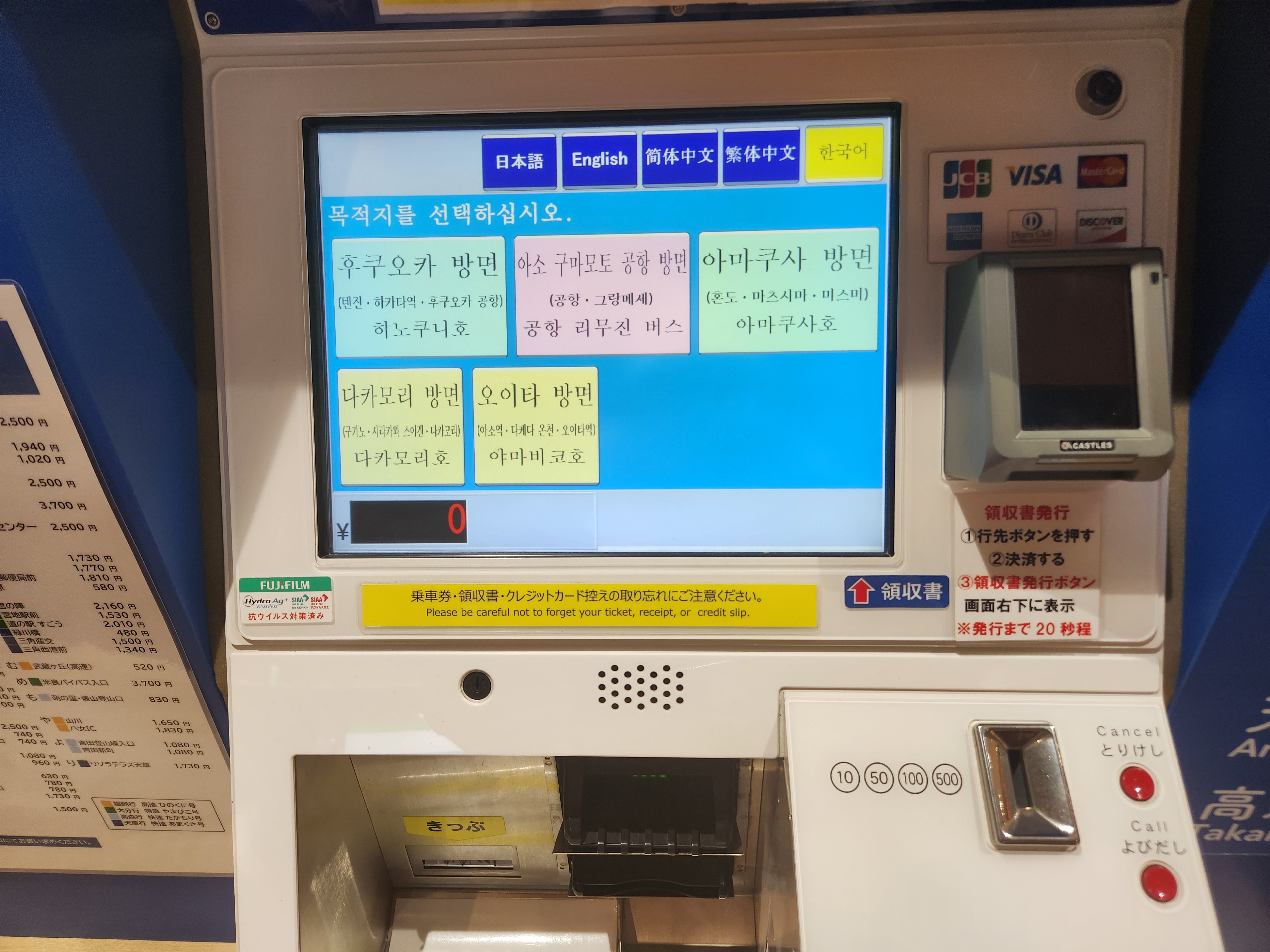 공항과 사쿠라마치 버스 터미널에서 사는 방법이 약간 상이하니
