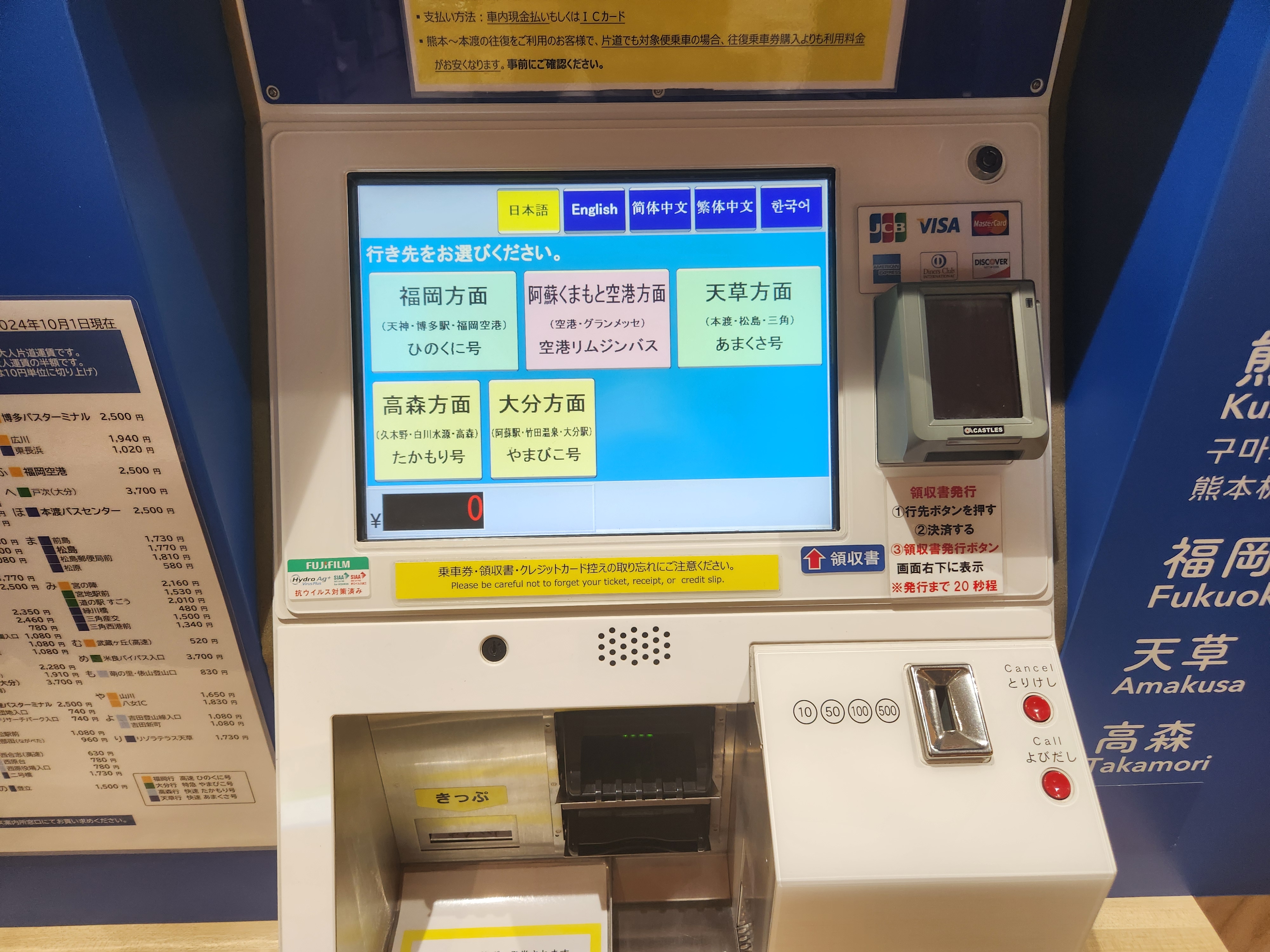 구마모토 공항과 시내 사쿠라마치 버스 터미널에서 버스 티켓을 구매하는 방법도 있습니다.