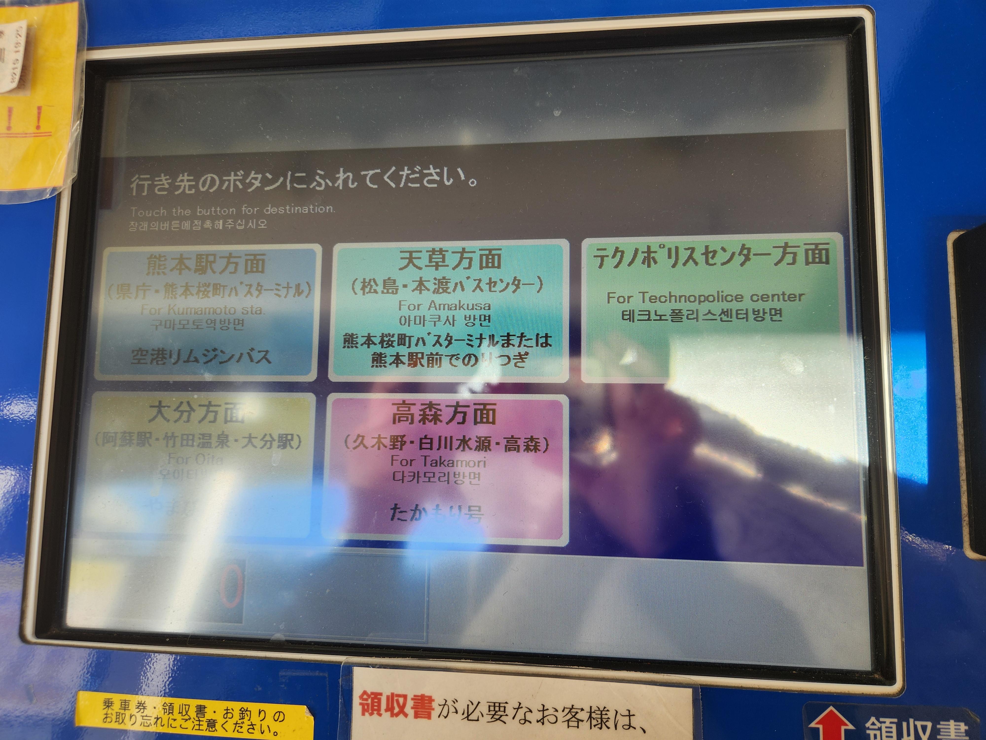 ③ 매표기에서 구마모토역 방면 버튼 클릭 (시내 사쿠라마치 버스터미널도 동일)